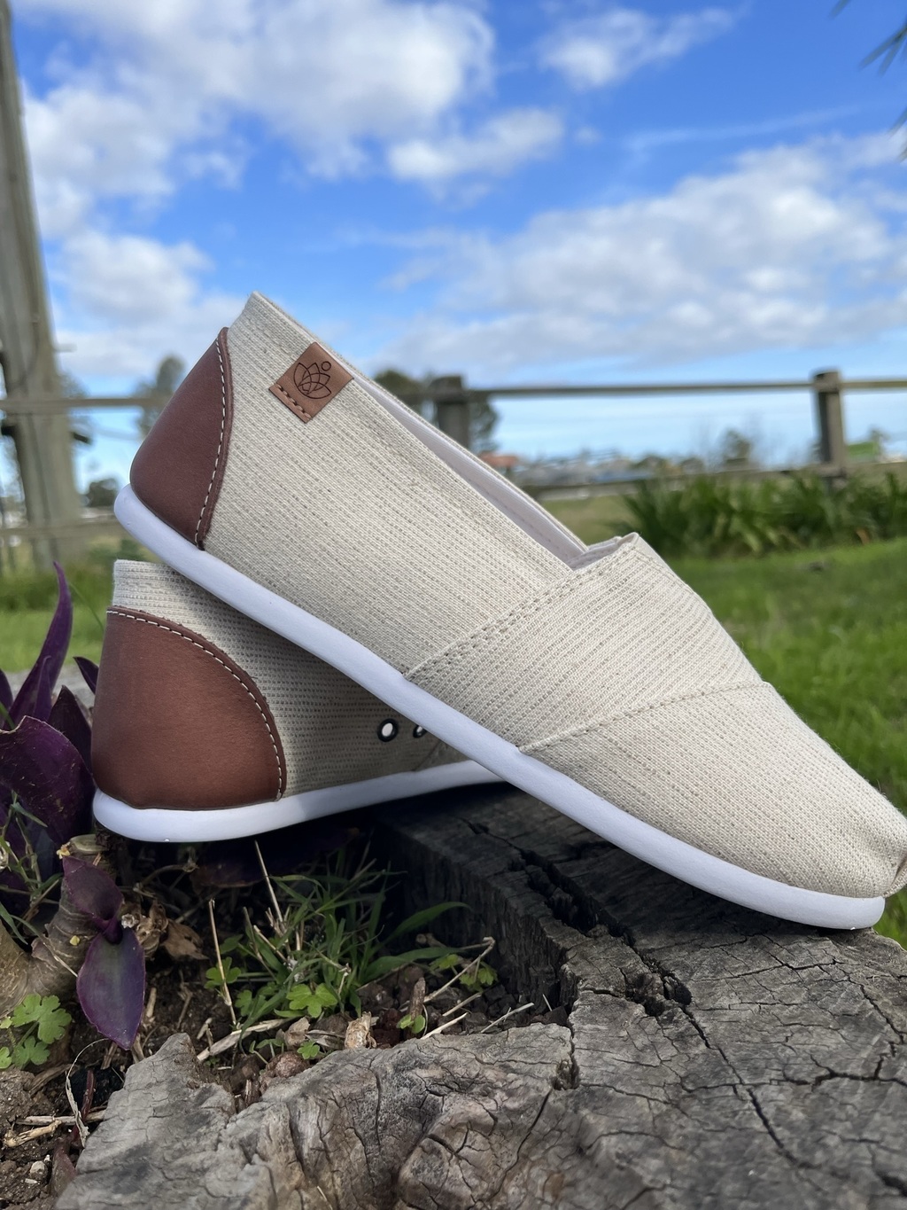 Alpargata La Madre Linho Cru Detalhe Couro no Calcanhar